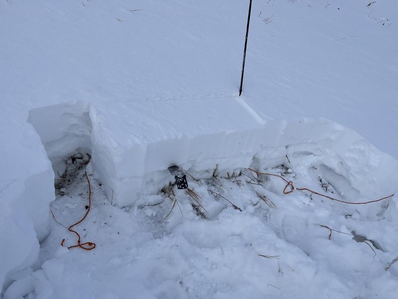 The poor snowpack structure is quite evident with strong snow over weak snow. The two ECT tests I performed resulted in one column failing when I was cutting the back and and the other result was an ECTP with just two taps from the wrist.
