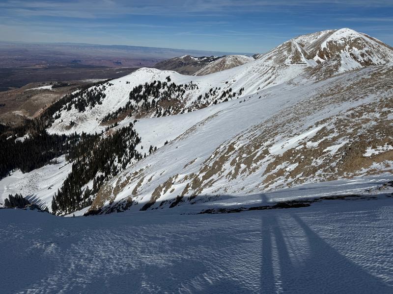 Fun skiing in this south facing gully. Very stout and supportive crust that was nice and soft around 1 pm. Would probably be a good idea to have ski crampons/whip it if traveling much in the alpine as most southerly slopes feel like April!