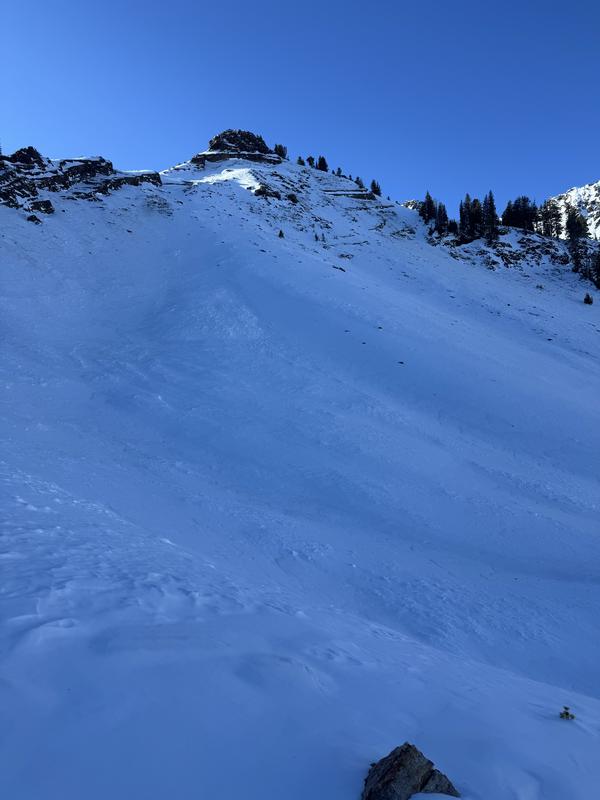 Headed up to Cardiac Bowl today to access the extent of the faceting that has been taking place the last 3 or 4 days with cold clear nights and warm days. I was surprised how weak the snow has gotten in a small amount of time. The Bowl avalanched wall to wall during our last storm, there’s over 6 ft of snow in the debris piles at the bottom but in the starting zone at 10700ft there is only about a foot and a half remaining and it has basically faceted out completely with a little crust layer towards the bottom. The upper snow pack in the bowl is super weak and will not support much weight when and if we get a load on it. I was also seeing weak snow on due E, NE, N,NW. The faceting snow made for better skiing but will be a major red flag when we get precipitation. First video is Cardiac Bowl, second one is due E