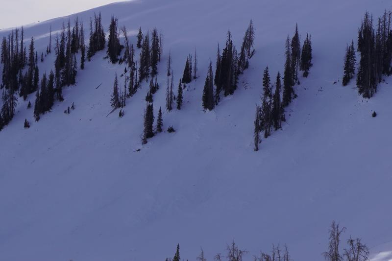 Avalanche viewership from last weekend’s cycle was the name of the game in the greater Windy ecosystem yesterday. Countless avalanches could be observed, some occurring so early in the cycle that they were almost impossible to make out, much less photograph. Attached, however are several more obvious avalanches that occurred later. This area, unlike many others in the range, has a connected weak layer sitting about 45cm off the ground - and grassy enough terrain to leave this layer uninterrupted.
