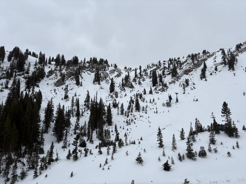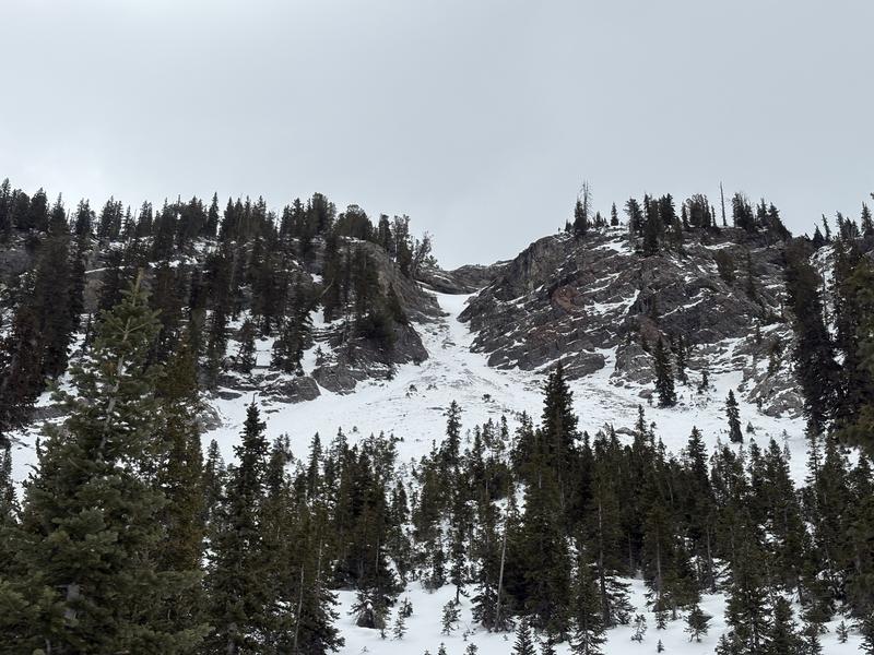 This chute avalanched naturally sometime during the early December cycle. Debris piles were observed lower in the track.