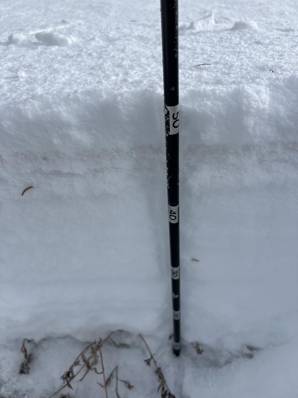 The snowpack I examined now has a top layer of dense snow with two layers of graupel sandwiching a thin melt/freeze layer. Below that snow was fist to 4 finger hard except for a roughly 1-2cm crust layer roughly 20-25 cm down which was in the 2-3 finger range.