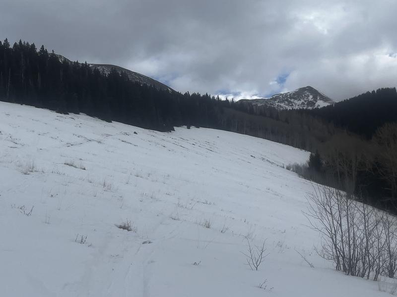 Thin and variable snow conditions. The recent heatwave has melted most S-SW aspects down to bare ground. NW winds last week stripped many northerly facing slopes above tree line down to the rocks. The surface on exposed slopes that still hold snow ranges from stout melt freeze crusts on southerly aspects, to wind crusts and sastrugi on northerly facing slopes. Northerly facing, sheltered terrain near tree line and below holds between 12-24 inches of dense loose, faceted snow.