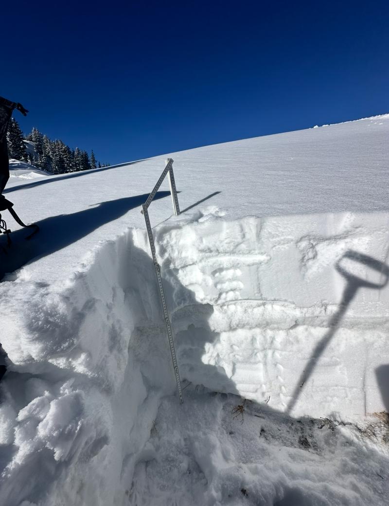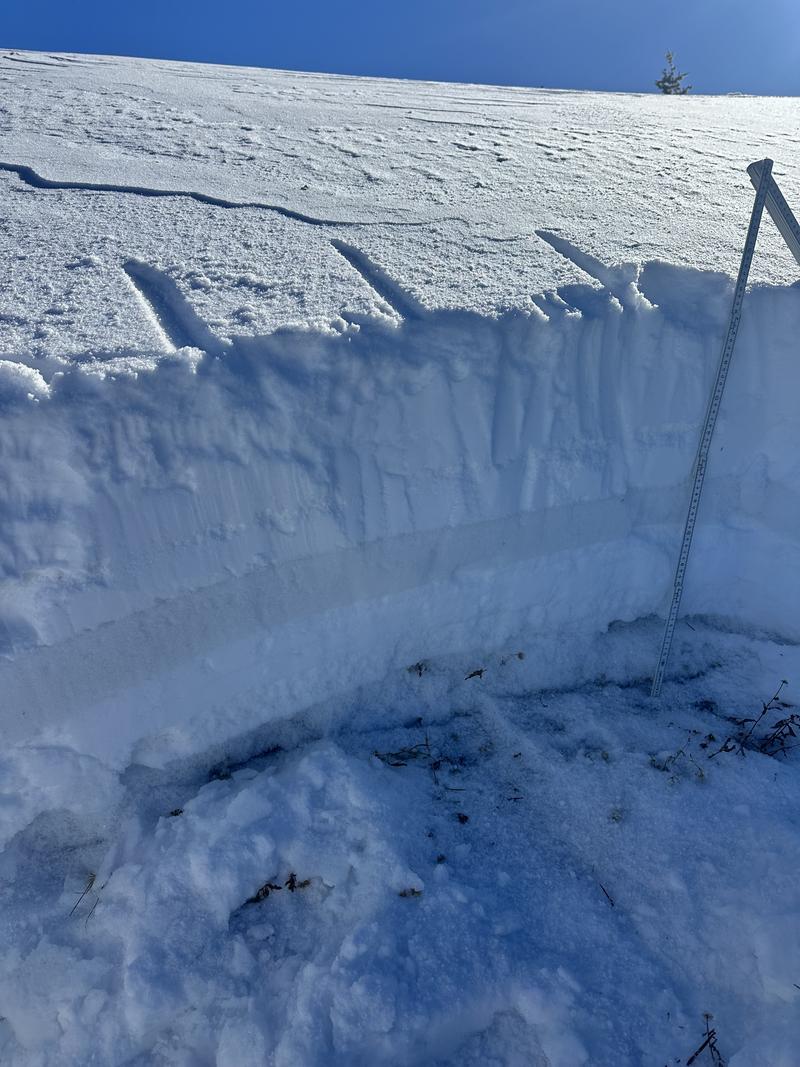 There are two key stories in the snowpack right now. The first is that every aspect has a stout, supportable rain crust. It’s an excellent bed surface for the recent new snow and wind drifted avalanches to run fast and far. It only takes a small amount of snow to pick up speed and entrain more snow along the way. The bed surface is slick, both for avalanches to slide on and for a slide for life condition in places. If something does get kicked off, it could turn into a slide for life in terrain that rolls long or ends in consequences.