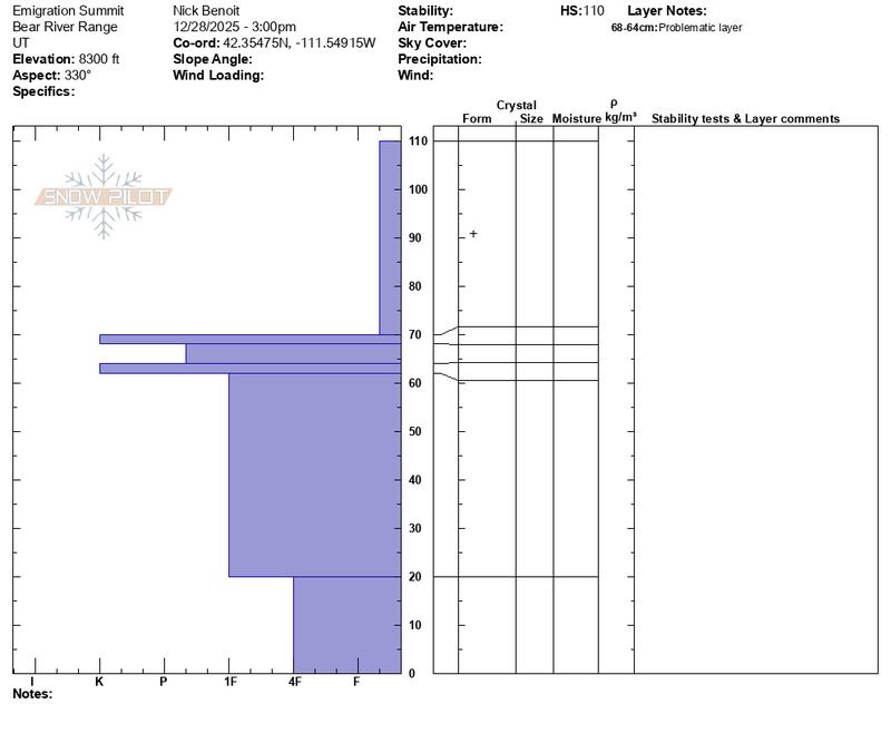Today finally felt like winter. In general I was expecting to find more signs of instability with so much water coming down the last few days. We really didn't observe any signs of instability to speak of today. The most interesting thing from a snowpack perspective was just how wet the snow is below the new storm snow. Even though the grains were fairly large (and fairly weak at the bottom of the snowpack) all of it is pretty saturated. I'm not sure i've ever seen anything quite like it this time of year.