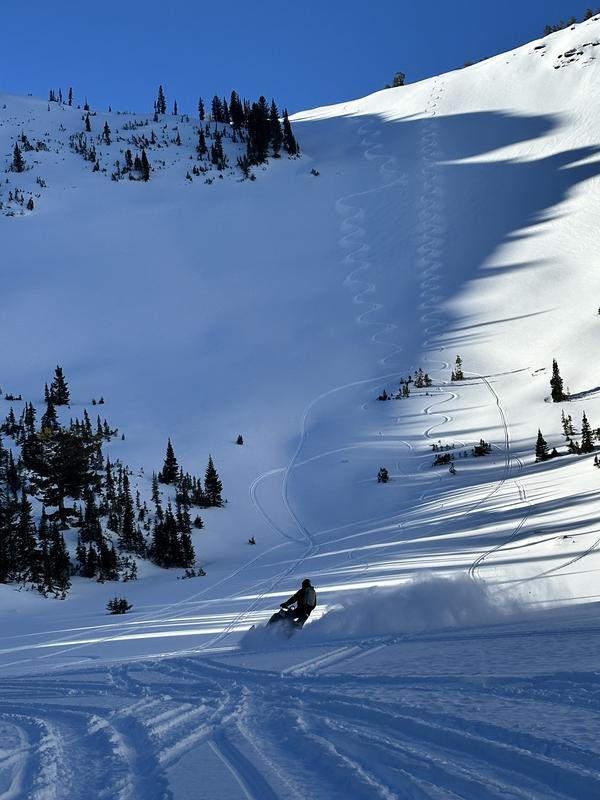 Today, we found great riding conditions and zero signs of instability. We stepped into bigger terrain while traveling and while riding, and the snowpack continued to feel generally LOW danger underfoot. Overall, the snowpack is showing signs of stability.