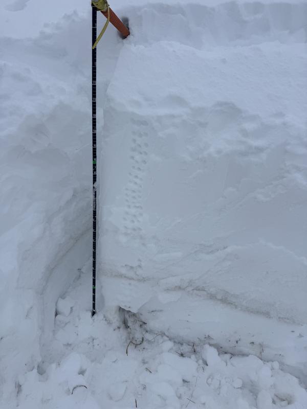 Stopped to perform an ECT at 9200’ on a roughly 28 degree slope facing NE. Total snow dept was a surprising 110cm. Granted we were on the leeward side, but this was slightly more than twice the snow depth I recorded in this area four days ago.