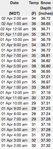 Above are 24 hour temperatures and snow depth in Upper Moffit Basin along with winds and temperatures from Windy Peak. More remote Uinta weather stations are found here A great body of recent trip reports, observations, and snow data here. |